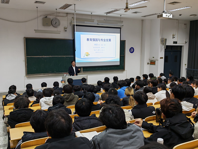 11月17日下午,校党委常委、副校长施佺教授围绕“教育强国与专业发展”主题,为6165cc金沙总站检测中心2025级本科生讲授形势与政策课。